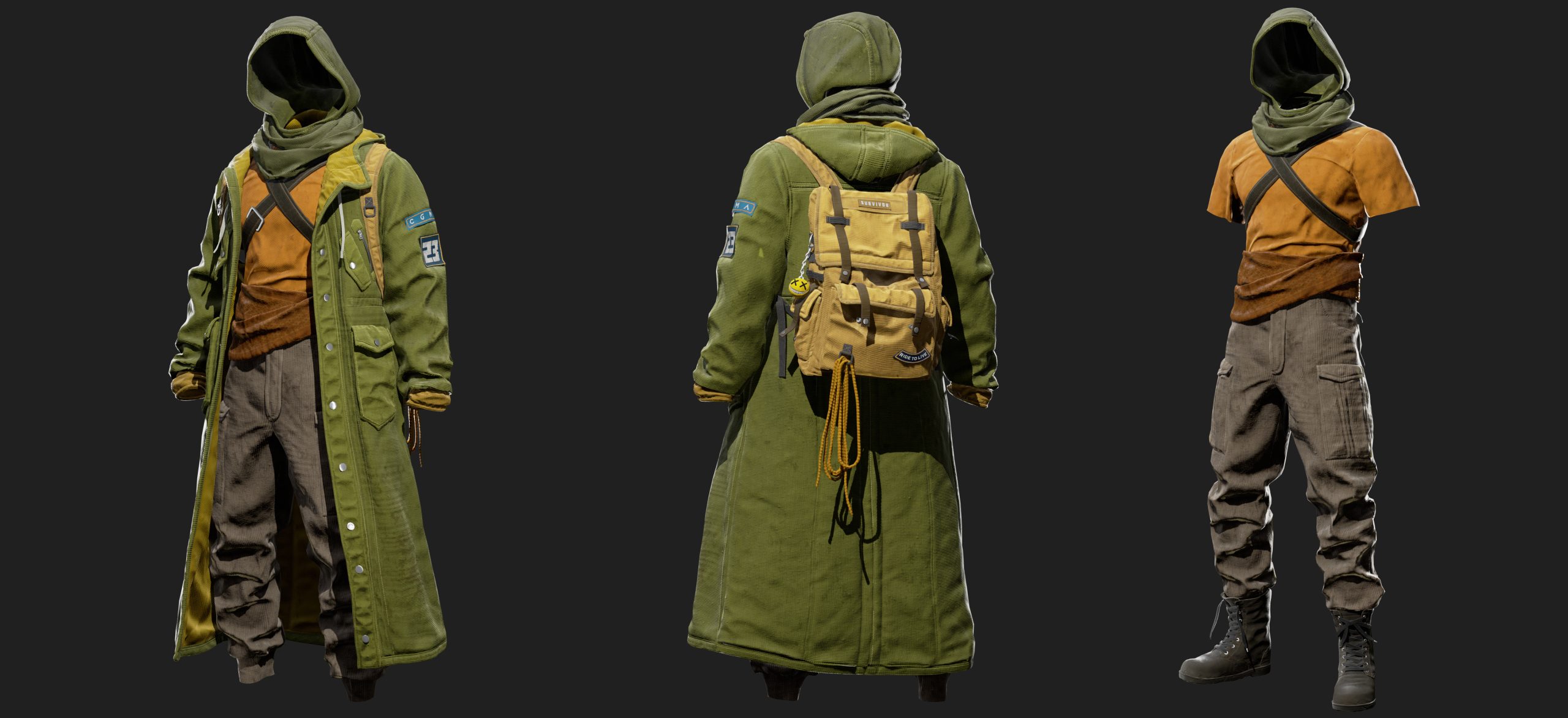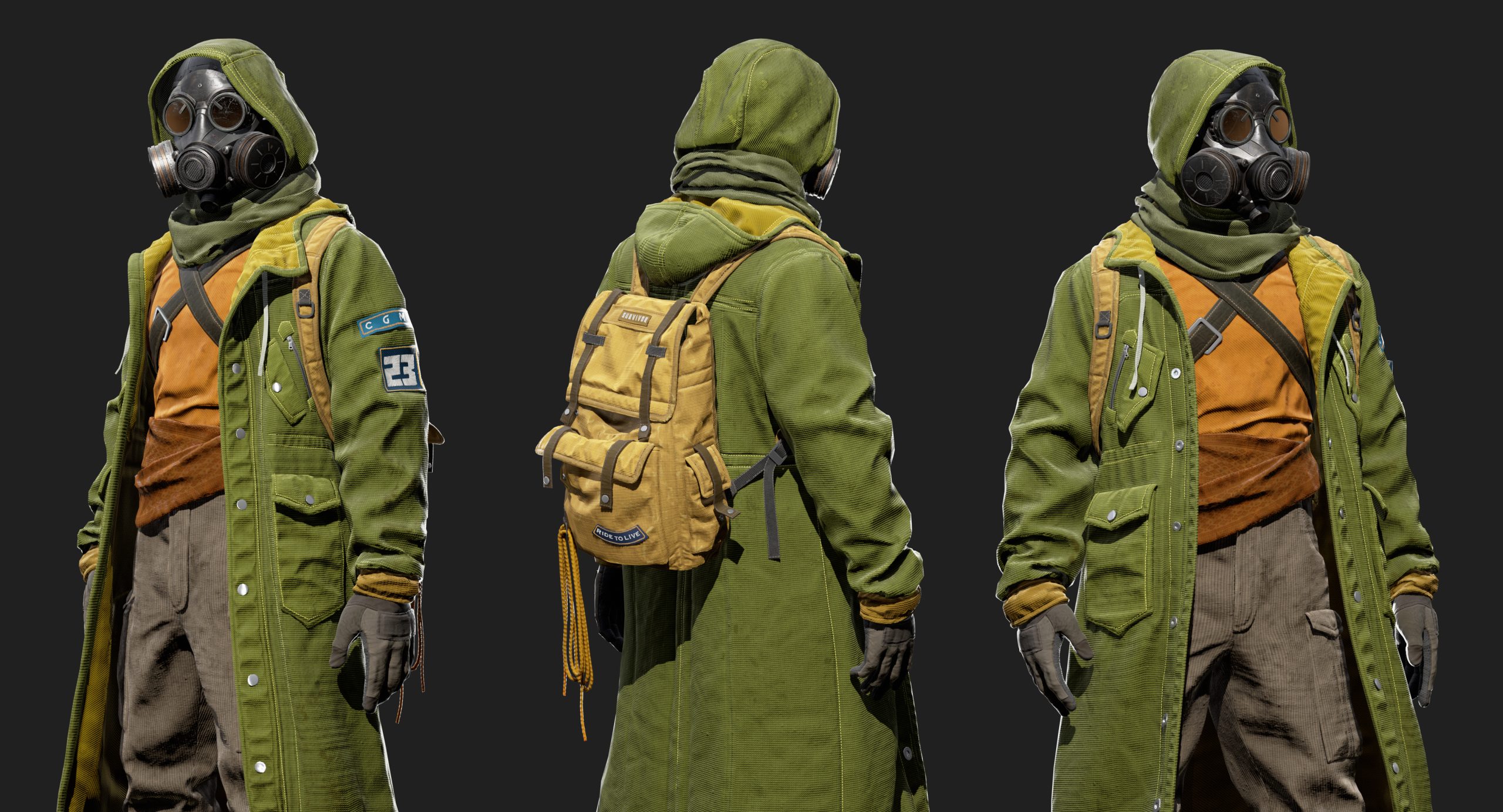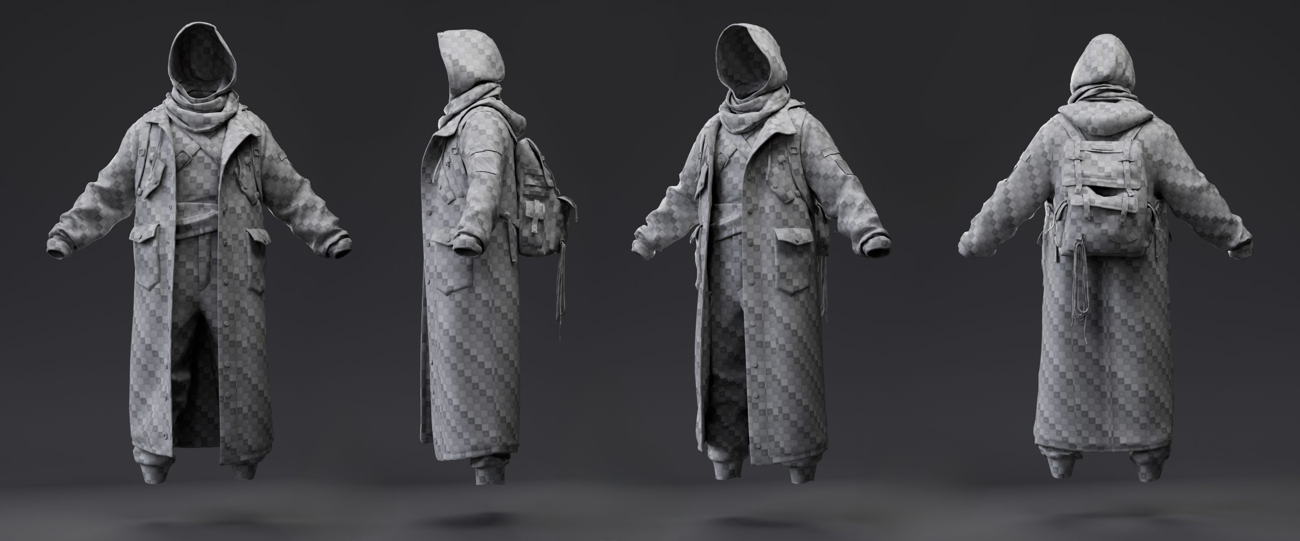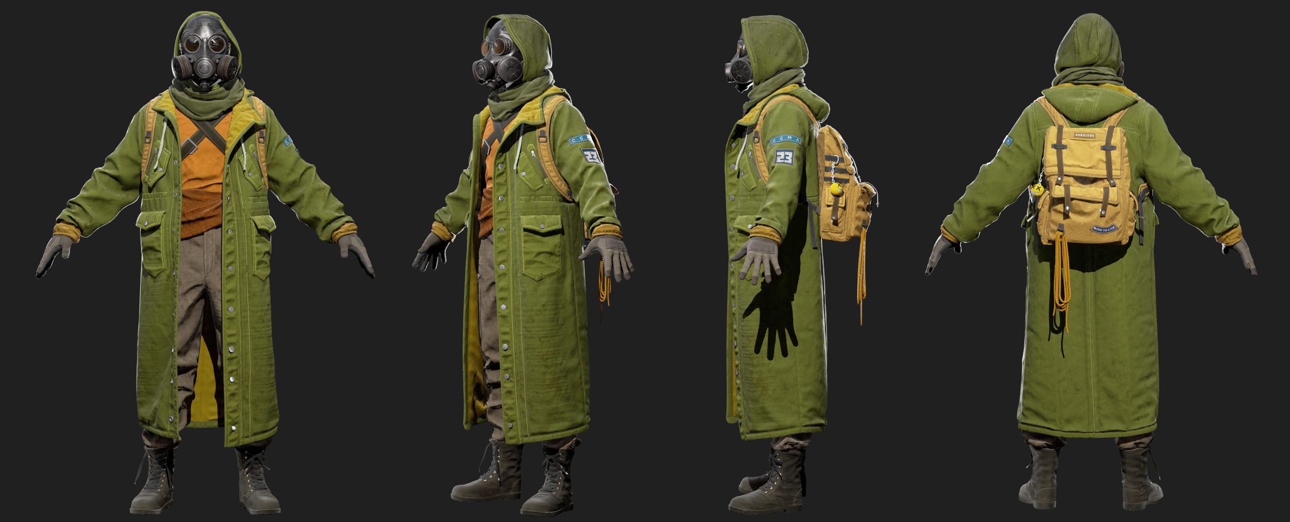 Character created for CGMA Cloth Creation and Simulation for Real-Time . Instructor Michele Ahn Gallery Marmoset renders Arnold renders Marvelous screenshots Process References Week 1 Marvelous block Week 2 Marvelous detailing and mask sculpt first pass Week 3 Retopo base and backpack creation on Marvelous Week 4 Clean topoloogy and uvs Week 5 Textures base colos in substance and first render pass. Extra details like zippers ,buttons ,patches ,ect. Week 6 Final turntable render ! CONTACT ME Thank you for visiting my website ,looking forward to hearing from you and helping you bring ideas and characters to life ! Let's Talk Now Linkedin Instagram Youtube Artstation Envelope