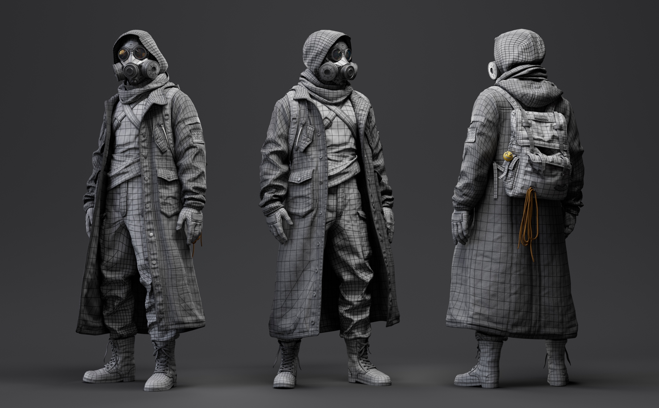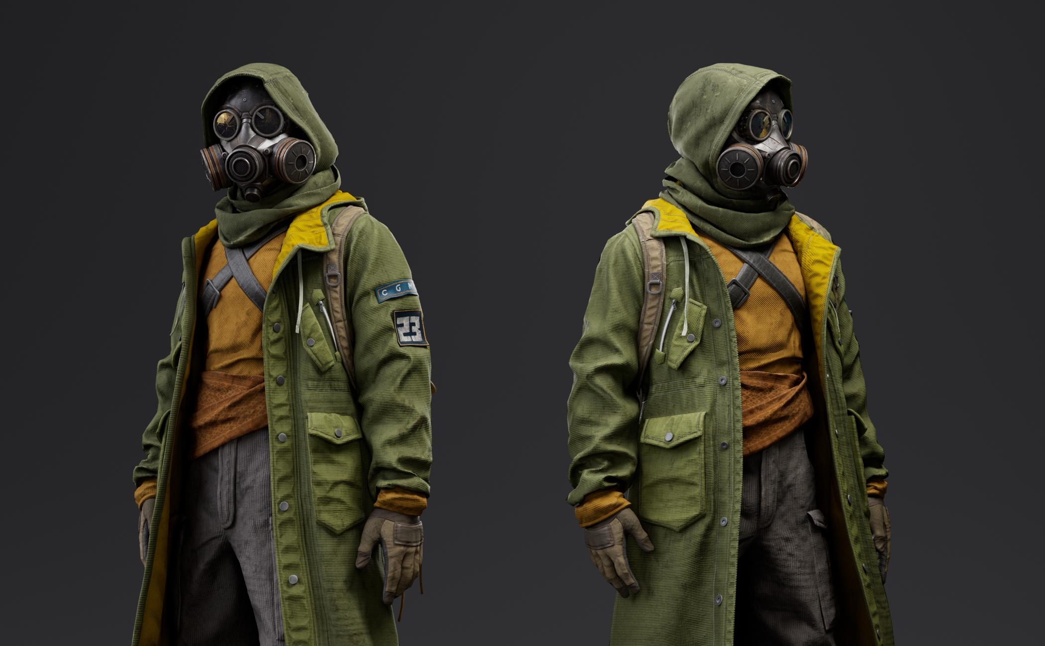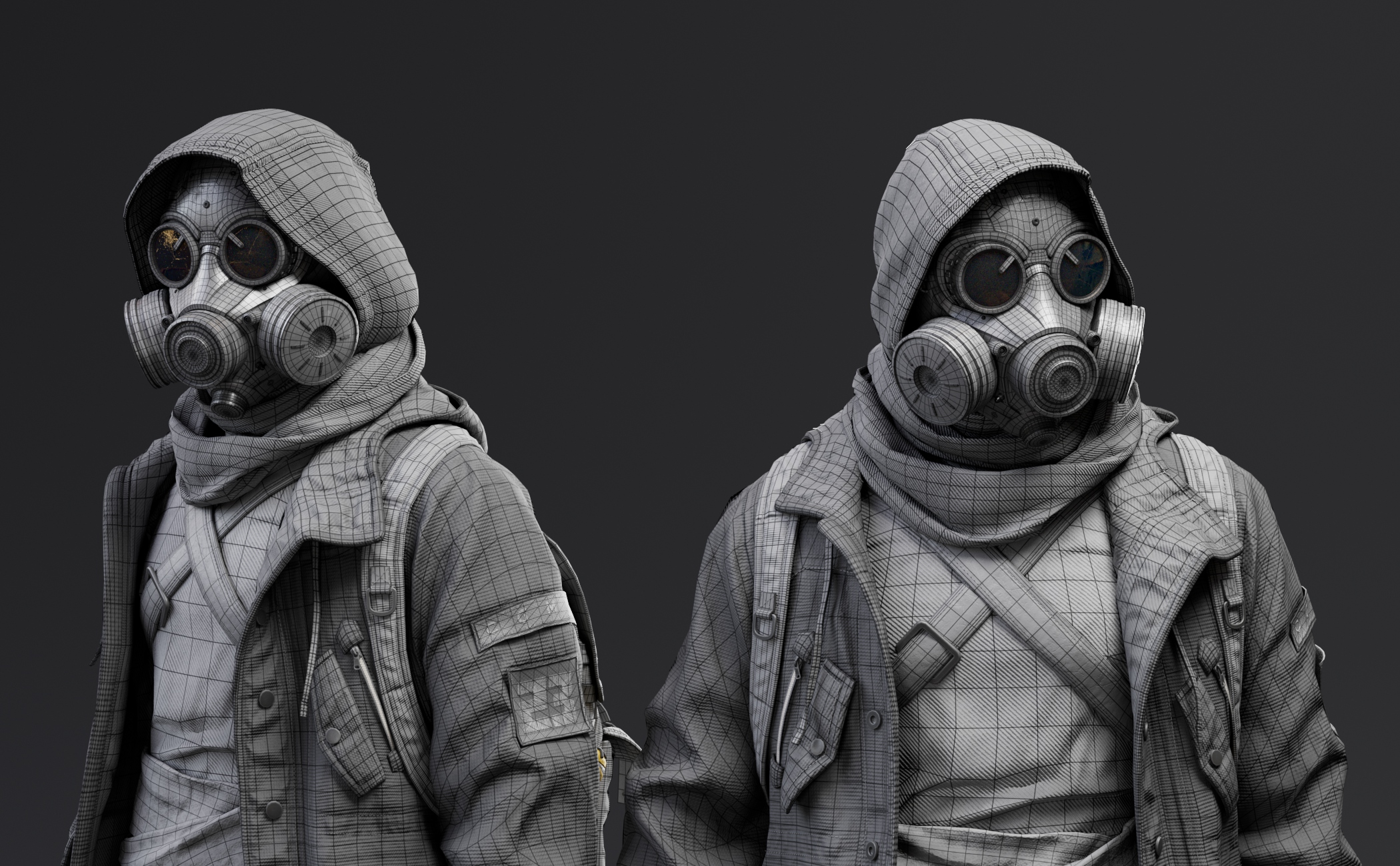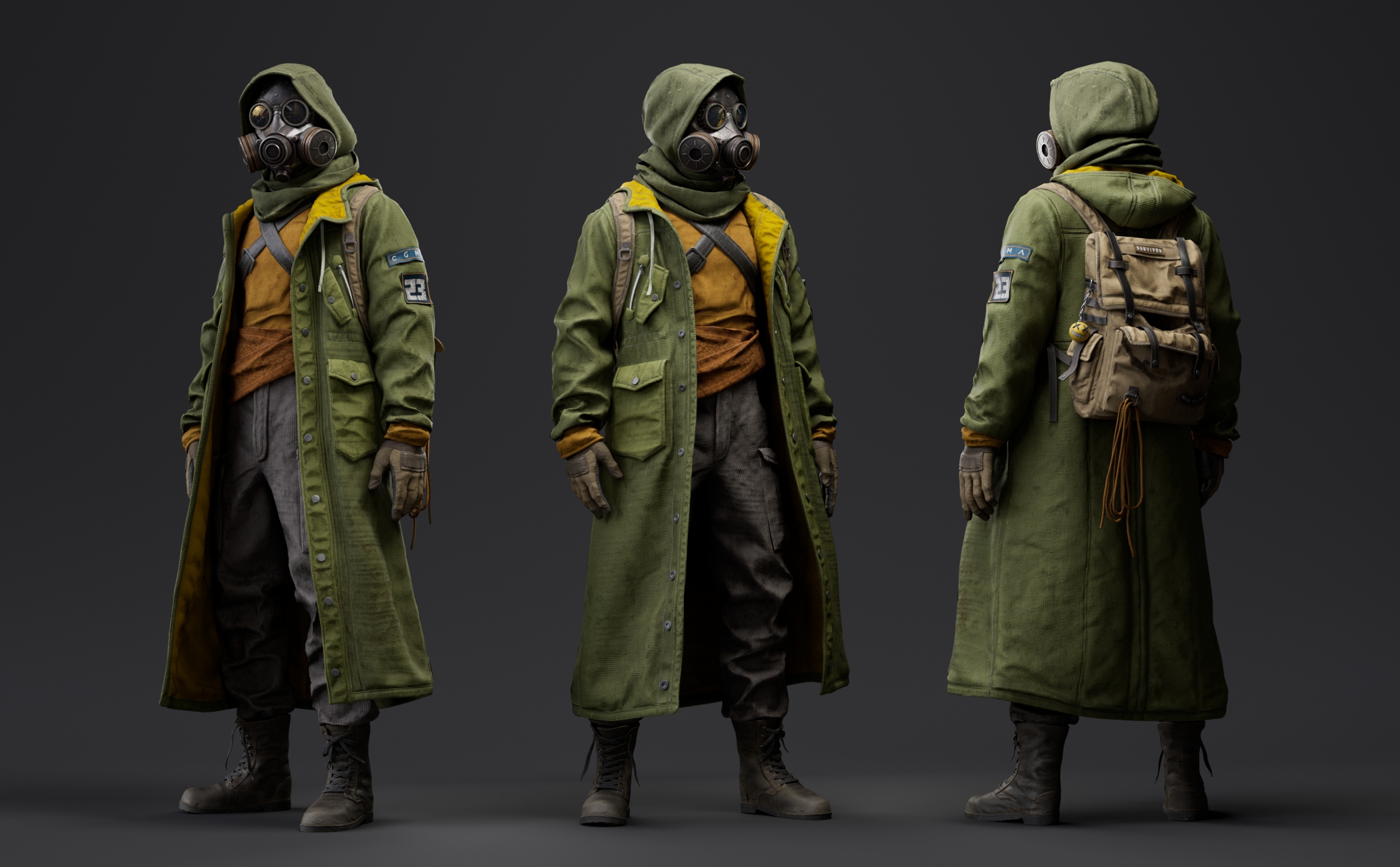 Character created for CGMA Cloth Creation and Simulation for Real-Time . Instructor Michele Ahn Gallery Marmoset renders Arnold renders Marvelous screenshots Process References Week 1 Marvelous block Week 2 Marvelous detailing and mask sculpt first pass Week 3 Retopo base and backpack creation on Marvelous Week 4 Clean topoloogy and uvs Week 5 Textures base colos in substance and first render pass. Extra details like zippers ,buttons ,patches ,ect. Week 6 Final turntable render ! CONTACT ME Thank you for visiting my website ,looking forward to hearing from you and helping you bring ideas and characters to life ! Let's Talk Now Linkedin Instagram Youtube Artstation Envelope