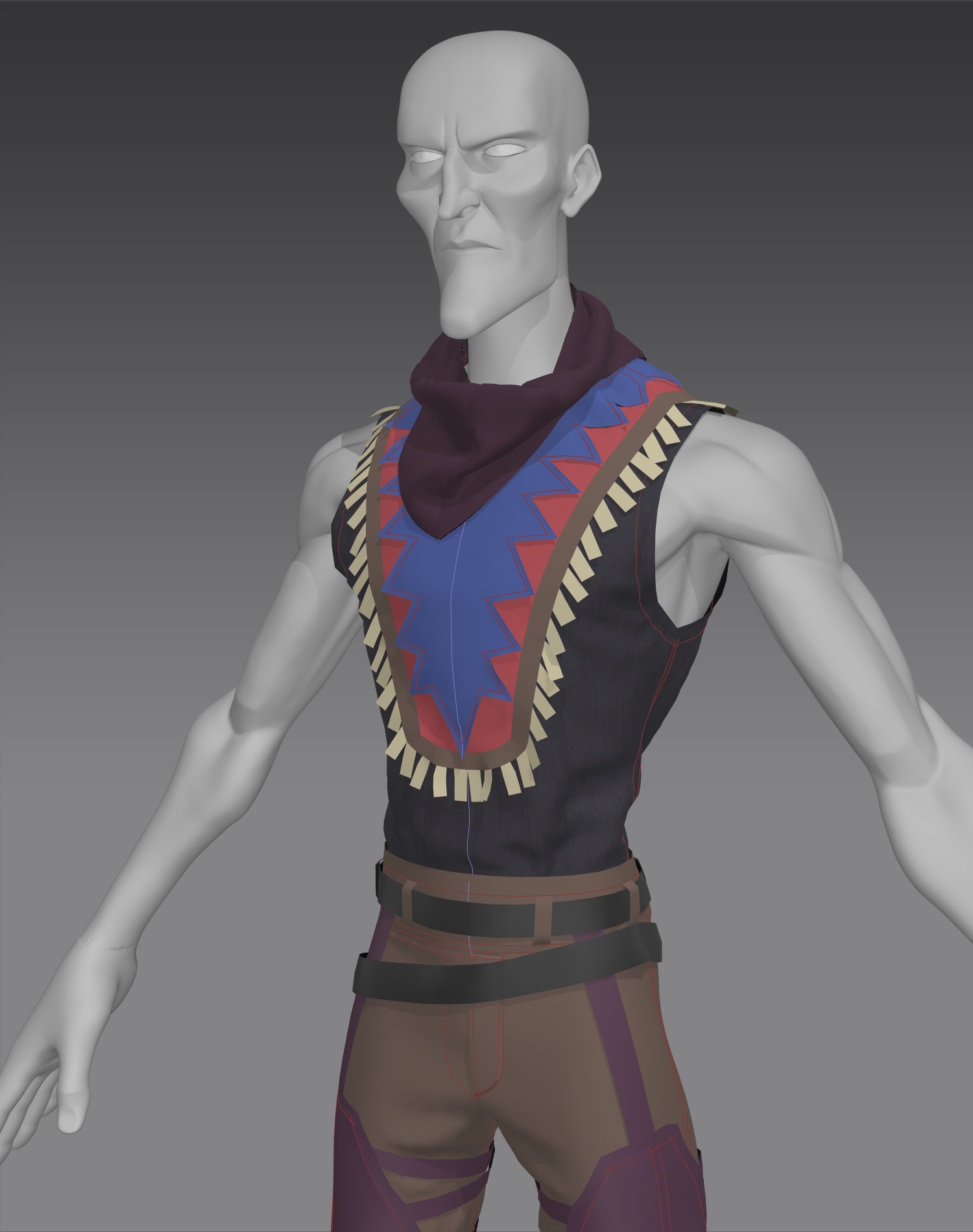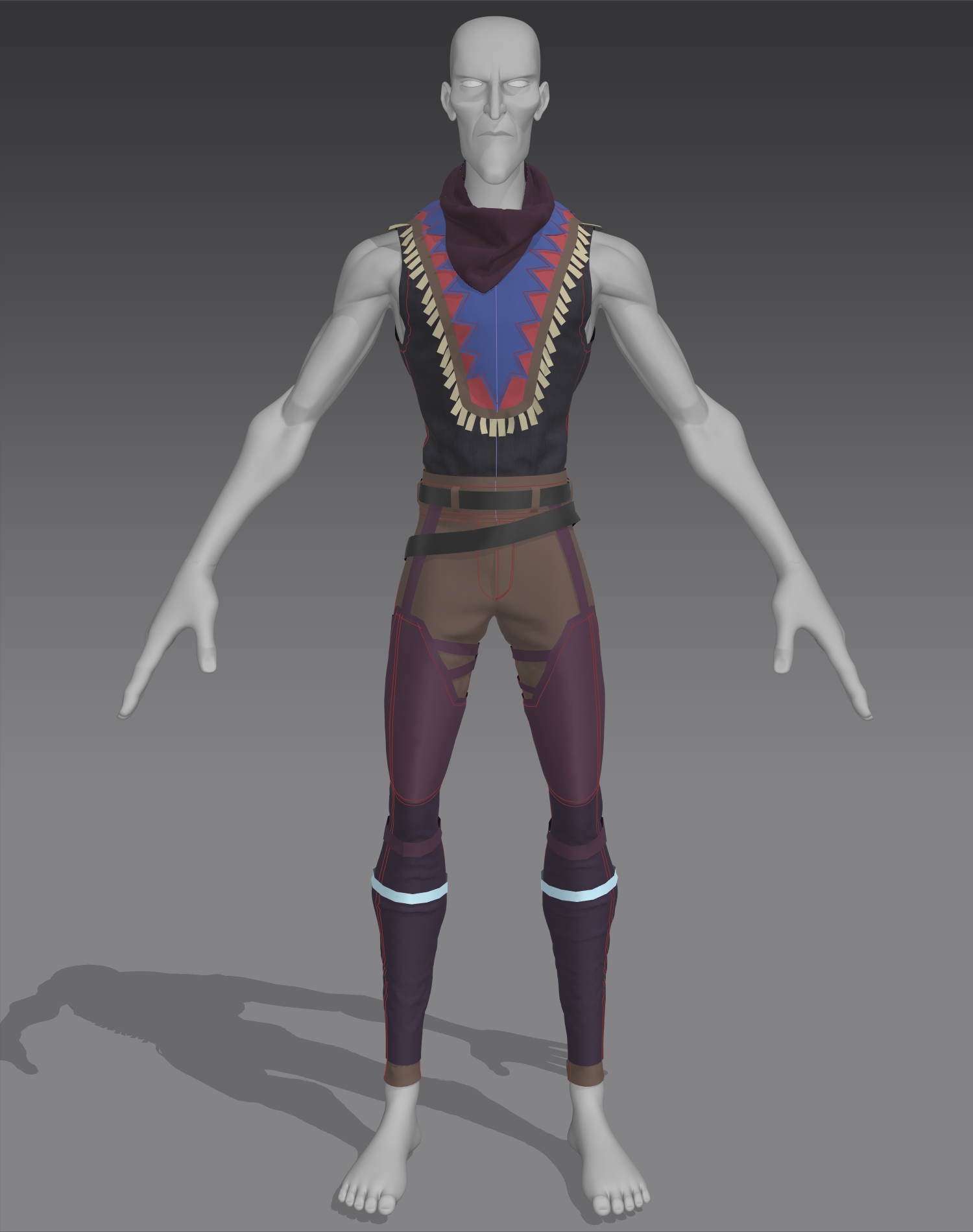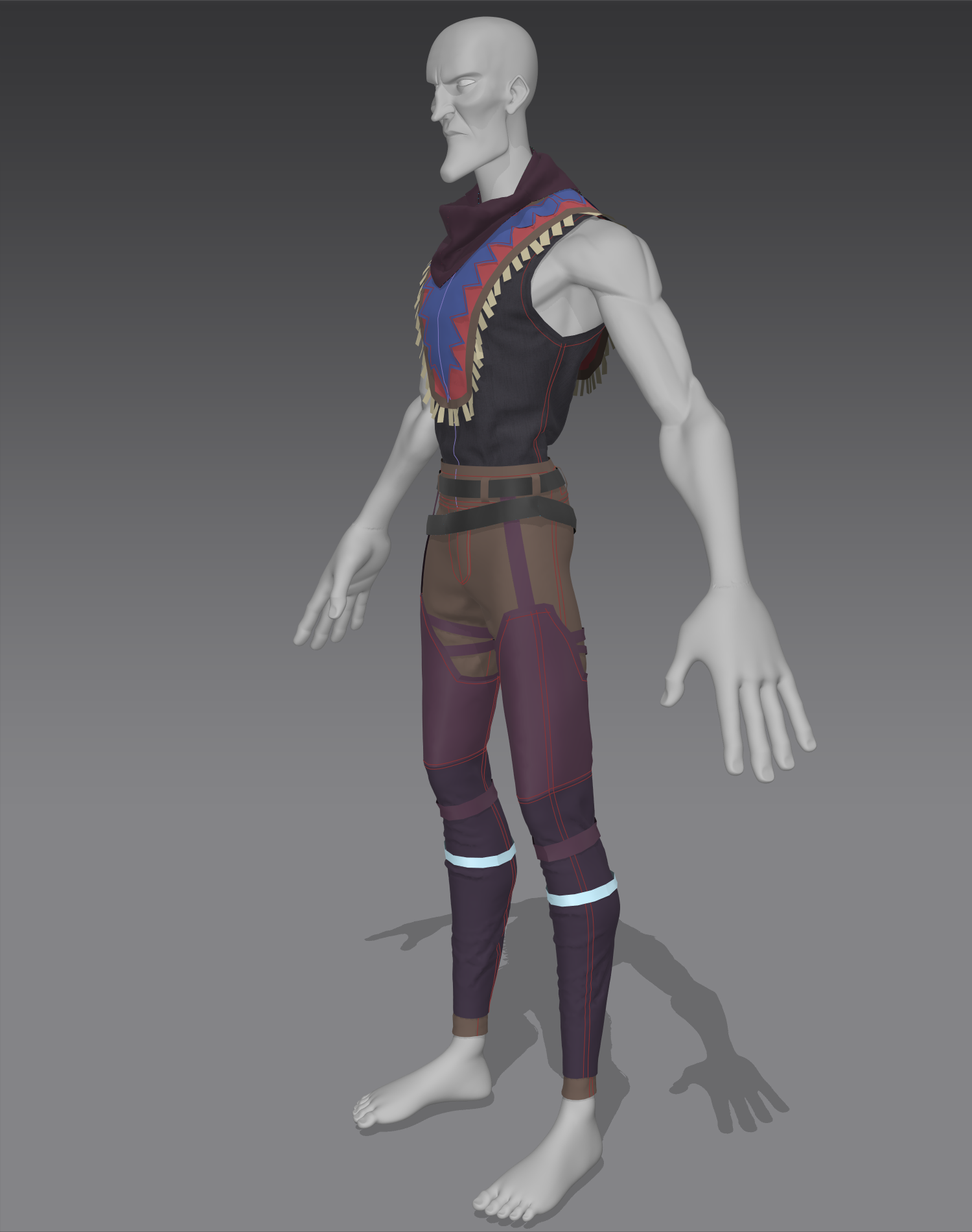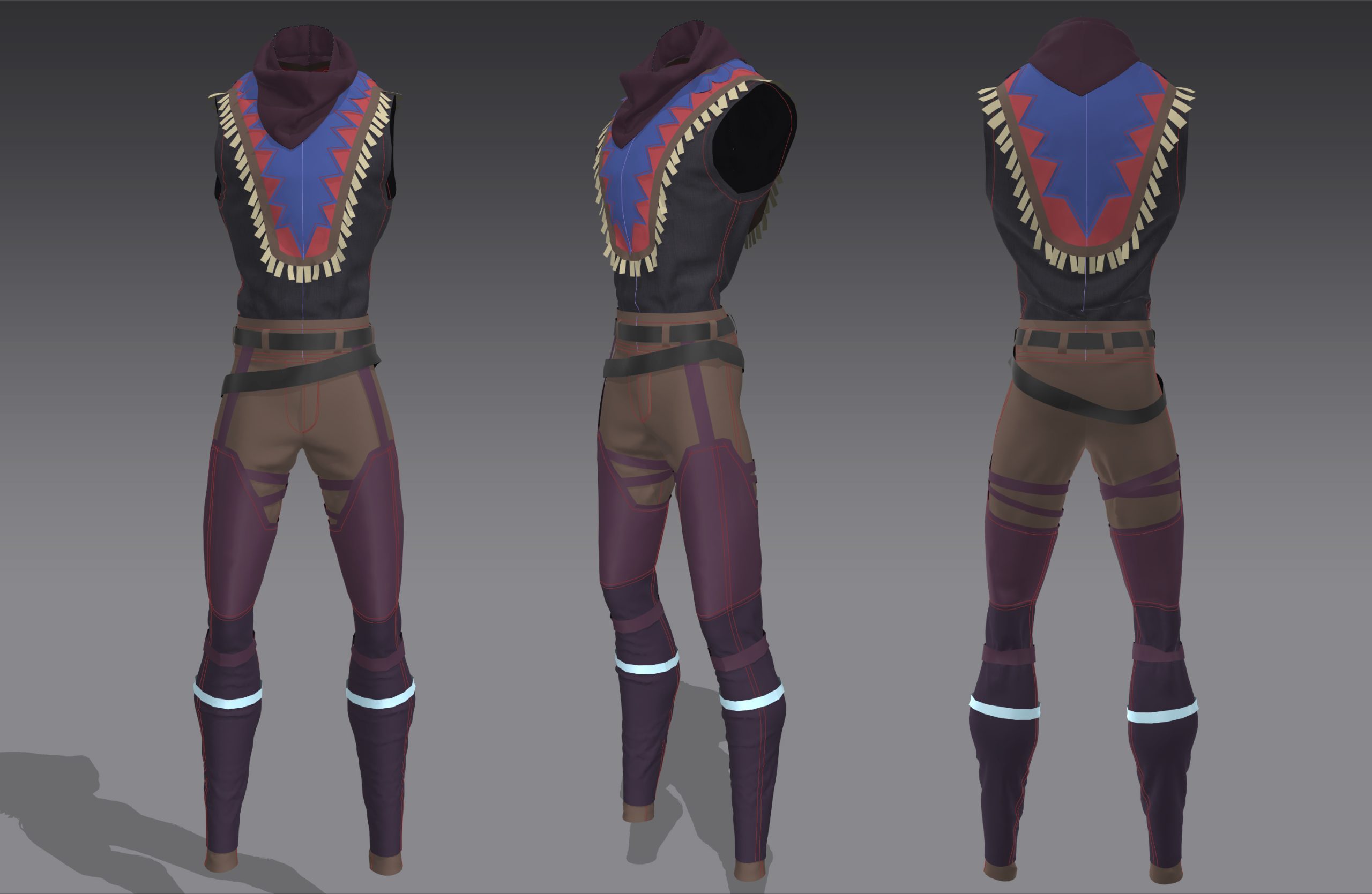 For Steel Town, I created the clothing in Marvelous Designer, featuring an Indian style. I aimed to incorporate various elements to enhance the silhouette, ensuring that each piece contributed to the overall visual of the character and the scene.